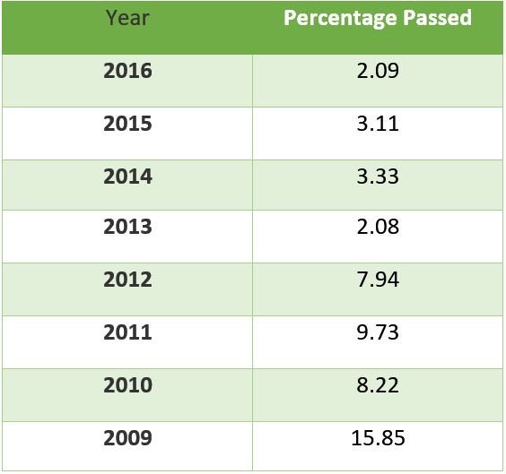 In 2009, 15.85% students managed to clear CSS exam. However, in 2016, only a handful of students cleared the exam. With each passing year, the graph of passing students is going downward.