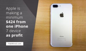 As soon as Apple launches a new device, there are talks in the town about how much profit the tech giant is making as far as new device is concerned. Today, the situation is no different as stories are getting spread across the internet about the numbers Apple is generating. It has been reported that Apple is making a minimum of $424 (PKR 42,000) by selling one iPhone 7 device.