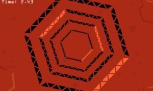 Let’s see – there’s an outer hexagon (that you control) with one of the sides lit up, and smaller hexagons (also with one side lit up) that are expanding in the middle like someone’s blowing bubbles. All the inner hexagons are rotating. You need to match the lit up sides of the outer hexagon with the lit up side of the next hexagon in the line of smaller expanding hexagons. When those sides are matched, the inner hexagon explodes and you try to match the next one. This continues until you fail to match the sides before an inner hexagon grows as large as the outer one.