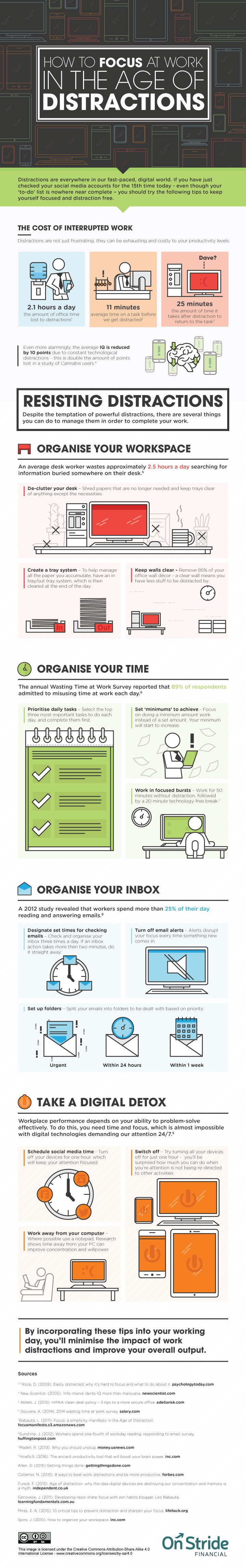 Check out our infographic below, which explores the many things you can do to minimise the impact of work distractions and improve your overall output.”