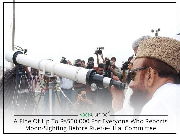 A fine between Rs200,000 to Rs500,000 will be imposed on individuals and private organizations in case they report moon-sighting before the committee. Moreover, the ministry will slap even higher penalty on media houses who will broadcast the moon-sighting before the Ruet-e-Hilal committee.