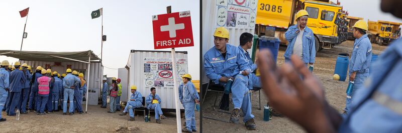 Nearby, similar compounds house the Pakistani engineers and workers, mostly from Karachi. The two groups keep separate schedules and take separate meals, with the cook turning meat into biryani and curries for one side and dumplings for the other.