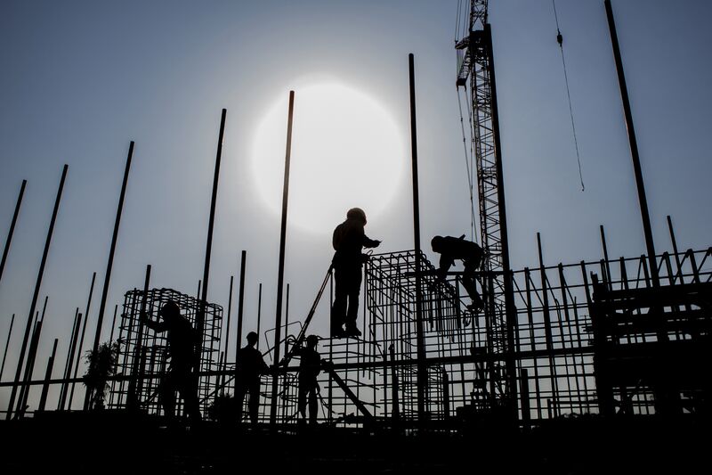Laborers prepare steel work at the on-site under construction power plant. Photographer: Asim Hafeez/Bloomberg