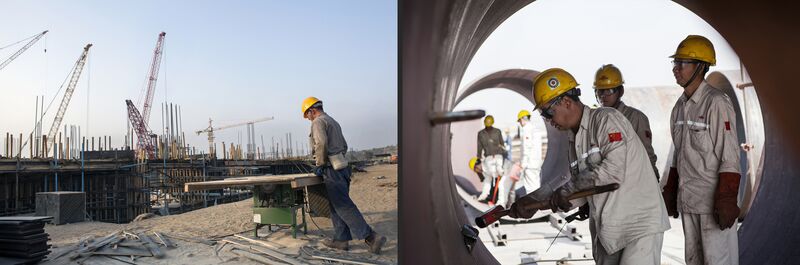 The Spartan accommodation houses about 350 Chinese workers on six-month stints, working 6 a.m. to 6 p.m. with a three-hour break during the hottest part of the day, when summer temperatures can reach 42 degrees Celsius (108 Fahrenheit).