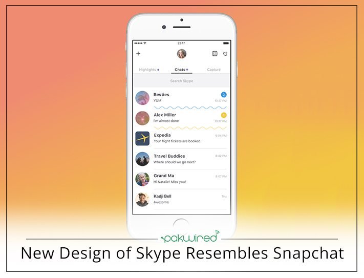 Skype has always been known as an audio and video call service but in the recent past many new services such as iMessage, WhatsApp, Snapchat and Messenger have dominated the world of conversations. The redesigned Skype offers three parts of a conversation; find, chat and capture. The find option allows you to search restaurants, images and enables you to add-ins content from Youtube or Giphys etc. In addition, it has the basic conversation feature with emoticons and picture adding option. The third option is to capture the image.