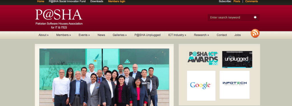 P@SHA (Pakistan Software Houses Association) is a platform that deals with Information Technology (IT) and Information Technology Enabled Services (ITES). It is the amalgamation of various software companies that are “engaged in the business, development, or marketing of software, IT & IT Enabled Services, information systems consulting, software related to training, provision of any IT or IT Enabled services.” It is currently the only organisation representing the IT industry in Pakistan, and “acts as a voice of the industry.”