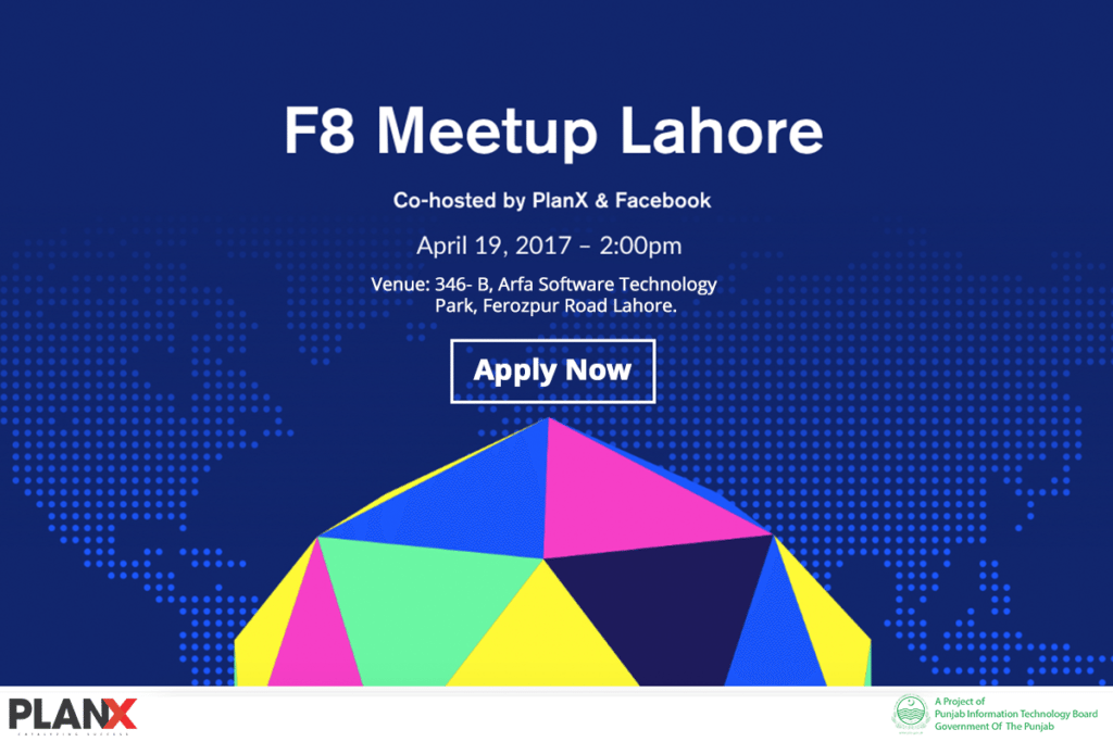 We’re pleased to announce that PlanX, a project of the Punjab IT Board, has partnered with Facebook to co-host the F8 Meetup in Lahore for the second year in a row. The F8 Meetup Lahore will take place on 19th April 2017 at Arfa Software Technology Park. This will be a fantastic opportunity for local developer’s community, start-ups and marketers to get together and explore new tools, features, possibilities and the future of technological advances, introduced by Facebook. Join us for streaming of the F8 opening keynote, followed by a session on ‘Nurturing the Next Generation of Developers’.