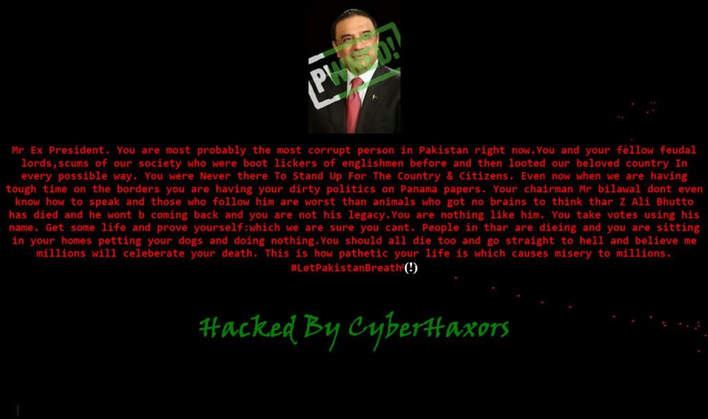 The hacker called the former President of Pakistan, Mr. Asif Ali Zardari, as: