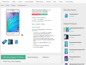 - List of retailers for the Samsung Galaxy J1 with latest prices (though the jury is out on why the last retailer shows a price of Rs 1.6 lakhs).