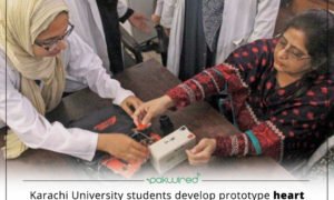In a remarkable performance, students of Karachi University’s Dr Panjwani Centre for Molecular Medicine and Drug Research (PCMD) have created a prototype model of a ‘heart attack detection device’ for patients with cardiac or cardiovascular disorders. The heart attack detector device consists of a smart kit including a circuit and is in its primary developmental stage.