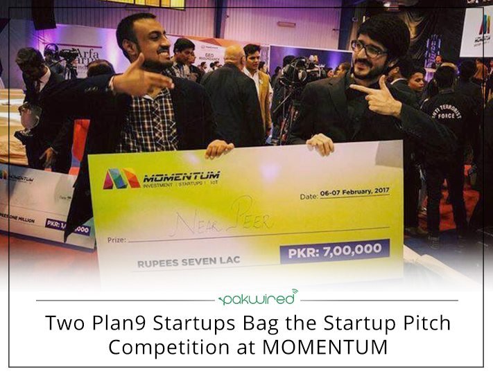 It won’t be wrong to say, the past two days at Momentum Tech Conference were truly constructive for the budding entrepreneurs looking to expand their network in the tech industry. The startup pitch competition started off with 180 startups competing for first 3 positions and a prize money of Rs. 10 lacs, Rs. 7 lacs and Rs. 3 lacs respectively. Amongst the top 180 startups, 24 startups from Plan9 were shortlisted including Gesdrive, Freightix, DIY Geeks, Azauj, CampusFeed, Capital Stake, XGear, Affordable.pk, Euphoria, Baby Planet, Axis Communications, Cart99, Legal Nexus, Mapalytics, Nearpeer, Qayaam, Neurostic, Dastaan, Car Butlers, Car Chabi, Justprice.pk, Uninama, Clique and Emoey. After the first round, 5 startups of Plan9, made it to top 20 namely DIY Geeks, Clique, Campus Feed, Car Butlers and Nearpeer.org. It was a matter of great pride for Plan9, when two of their startups made it to the top 4 including CampusFeed and Nearpeer. However, it was even more of a heartfelt joy when both of them were announced the winners of startup pitch competition. Nearpeer remained 1st runners up and bagged Rs. 7 lacs for their startup while CampusFeed remained the 2nd runners up accepting a prize money of Rs. 3 lacs.