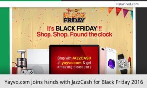 Online shopping store in Pakistan, Yayvo.com has teamed up JazzCash to bring exciting deals to its customers on Black Friday 2016 (25th November). Yayvo.com relished great success in September recently when it successfully conducted Great Online Shopping Festival (GOSF).